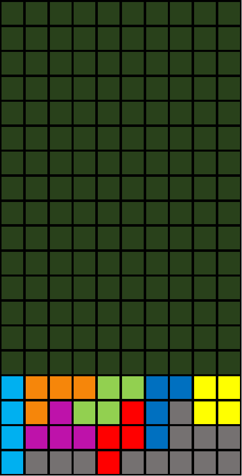 まずはOミノを残しつつ、Tスピントリプル・ダブルを発火して全てハードドロップ可能な”最強”の構築。