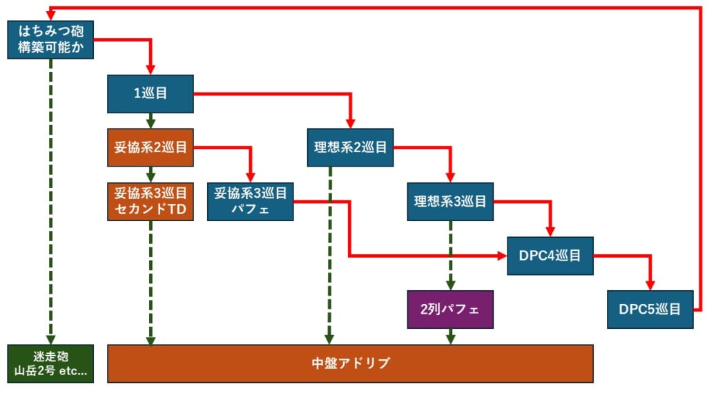 3巡目突入段階でこれらがわかったらサクッと組んでTDパフェ完走を目指そう。